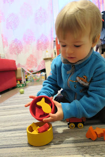 I've started to have my laptop off during his awake time because I got so tired of him requiring to watch youtube videos, but not being able to specify what he wants to watch...everything was "no, no", but if I turned it off, he started screaming. No need for such a pointless drama. I didn't become any more effective, no surprise there :), I just sit on the sofa or on the floor and watch him play or comment on what he wants me to comment on. He spent his days building from Lego Duplo (now I'd say it's a must to have it, thinking about getting him some other building kits like Magformers), playing with his train (doing crashes) and jumping around...that's pretty much it...not very productive either.